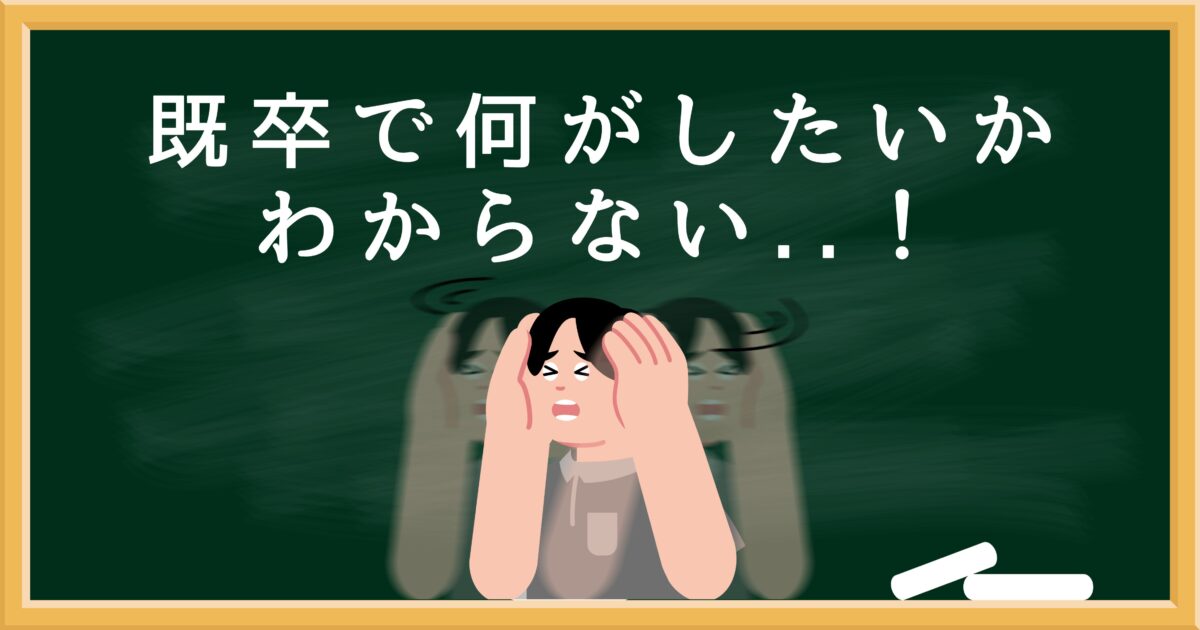 新卒の就活で内定が取れなかった、あるいはあえて就職しなかった。理由はさまざまでも、既卒になった今「自分は一体何がしたいんだろう」というモヤモヤを抱えている方は、本当に多いです。