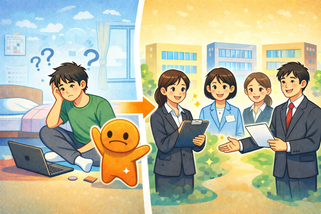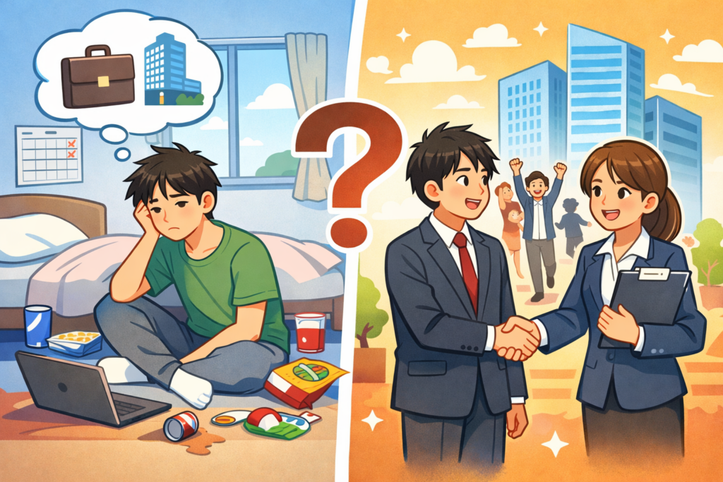 この記事では、現在ニートの状態にある人が、えーかおキャリアを利用できるのかどうかを軸に、条件や注意点、実際に紹介されやすい仕事の特徴までを分かりやすく整理しています。
