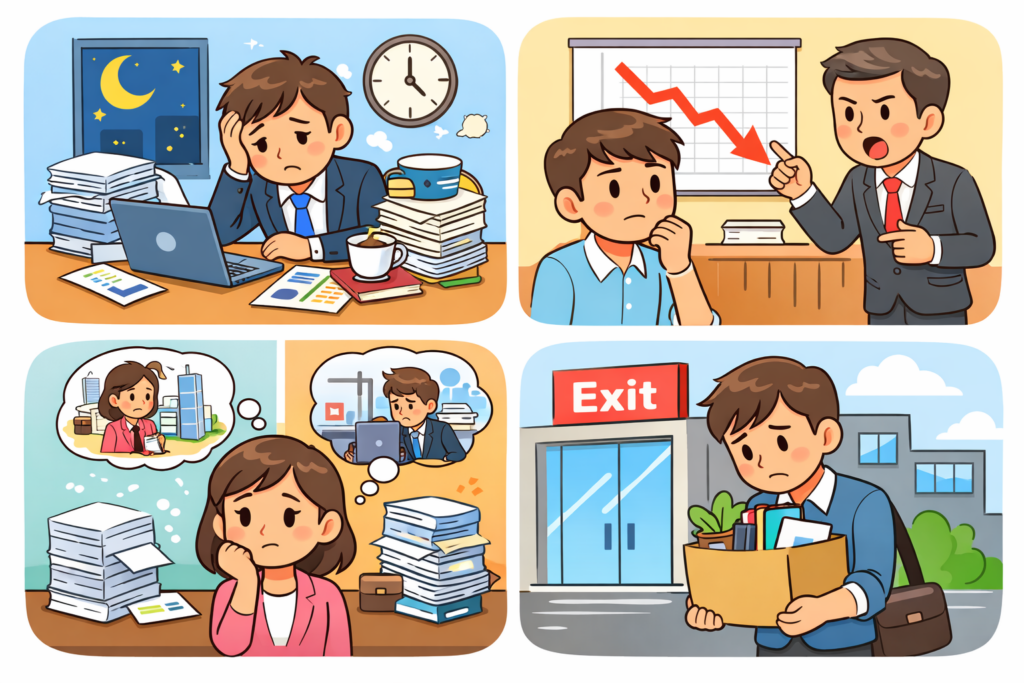 ・労働時間、成果プレッシャー、ギャップが失敗の原因になりやすい