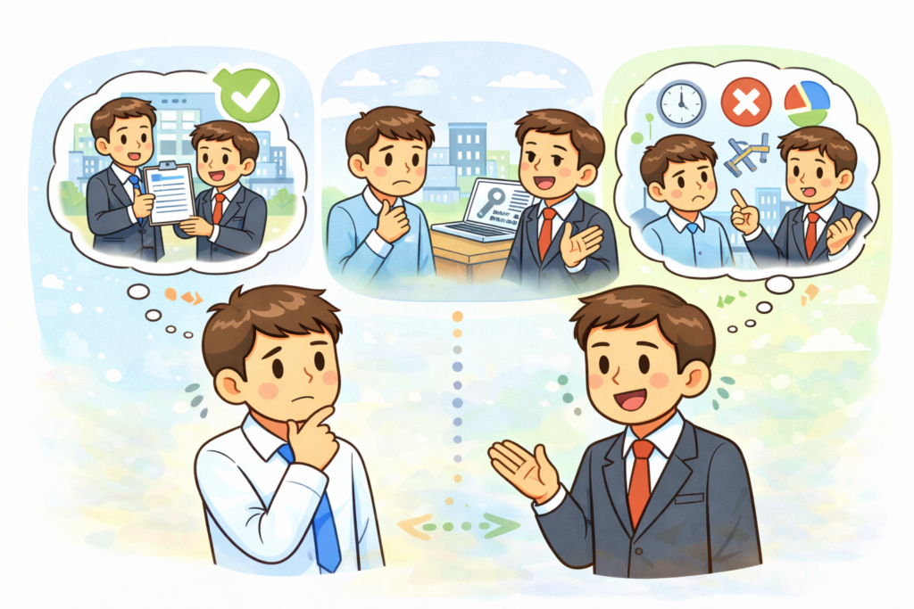 ここでは、転職相談の現場でよく出てくる不安や失敗パターンをもとに、なぜそう言われるのかを一つずつ噛み砕いて説明します。