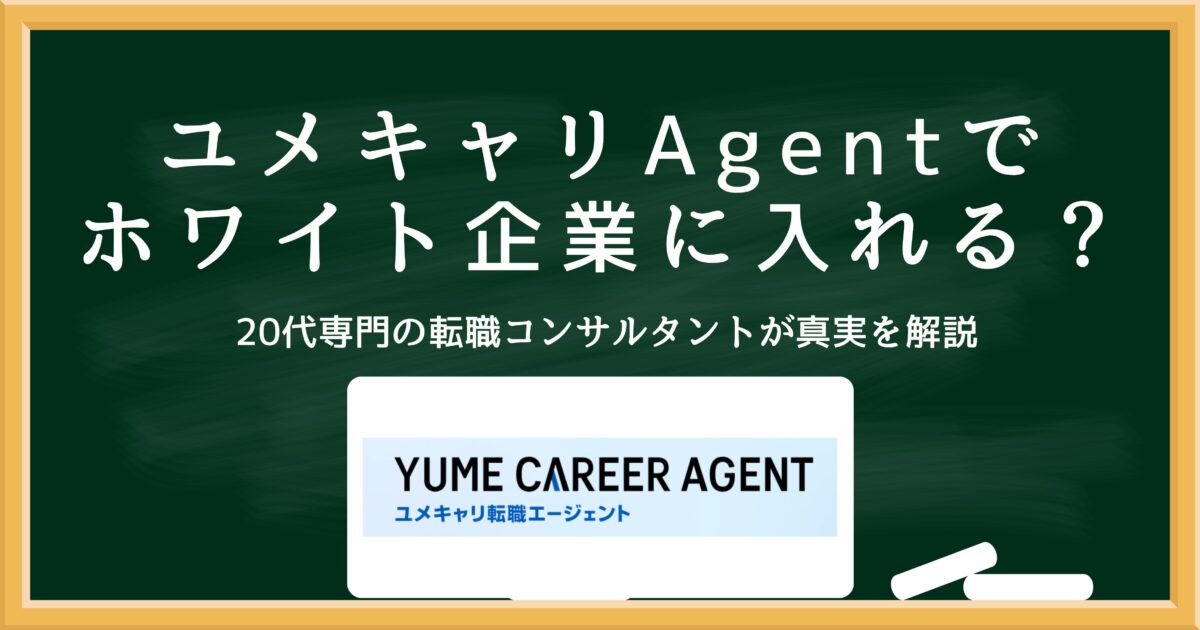 ホワイト企業に強いエージェントを今すぐ見る ▼ ※ユメキャリAgent含む最適な組み合わせを紹介していますユメキャリAgentでホワイト企業に入れるのか【結論】